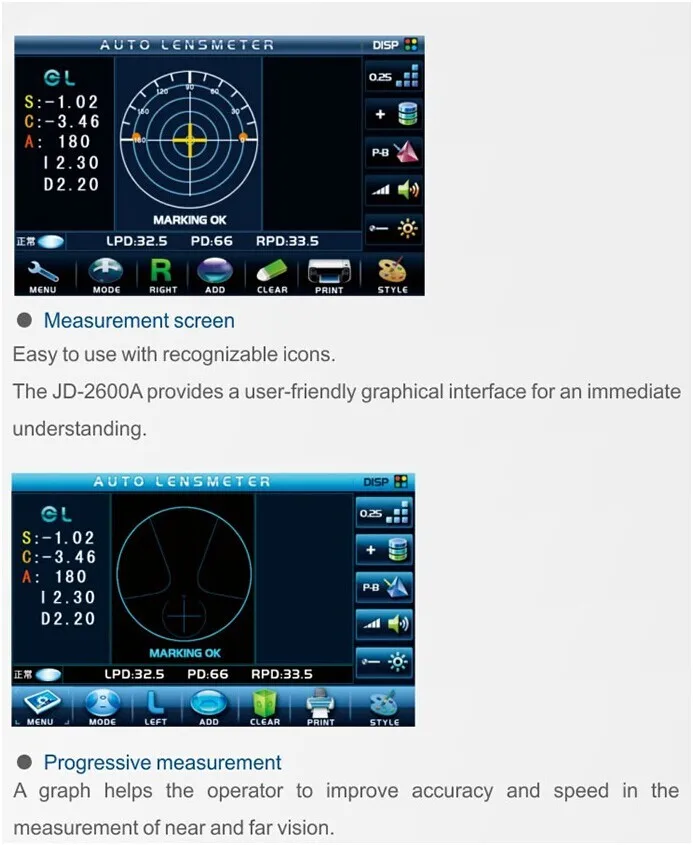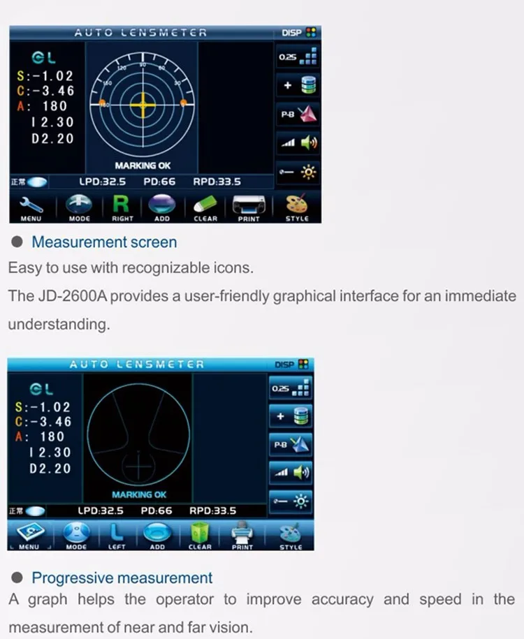 Auto Lensmeter JD-2600A Focimeter 7″ True Color Monitor | CE and FDA | Touch Screen | CL accessible